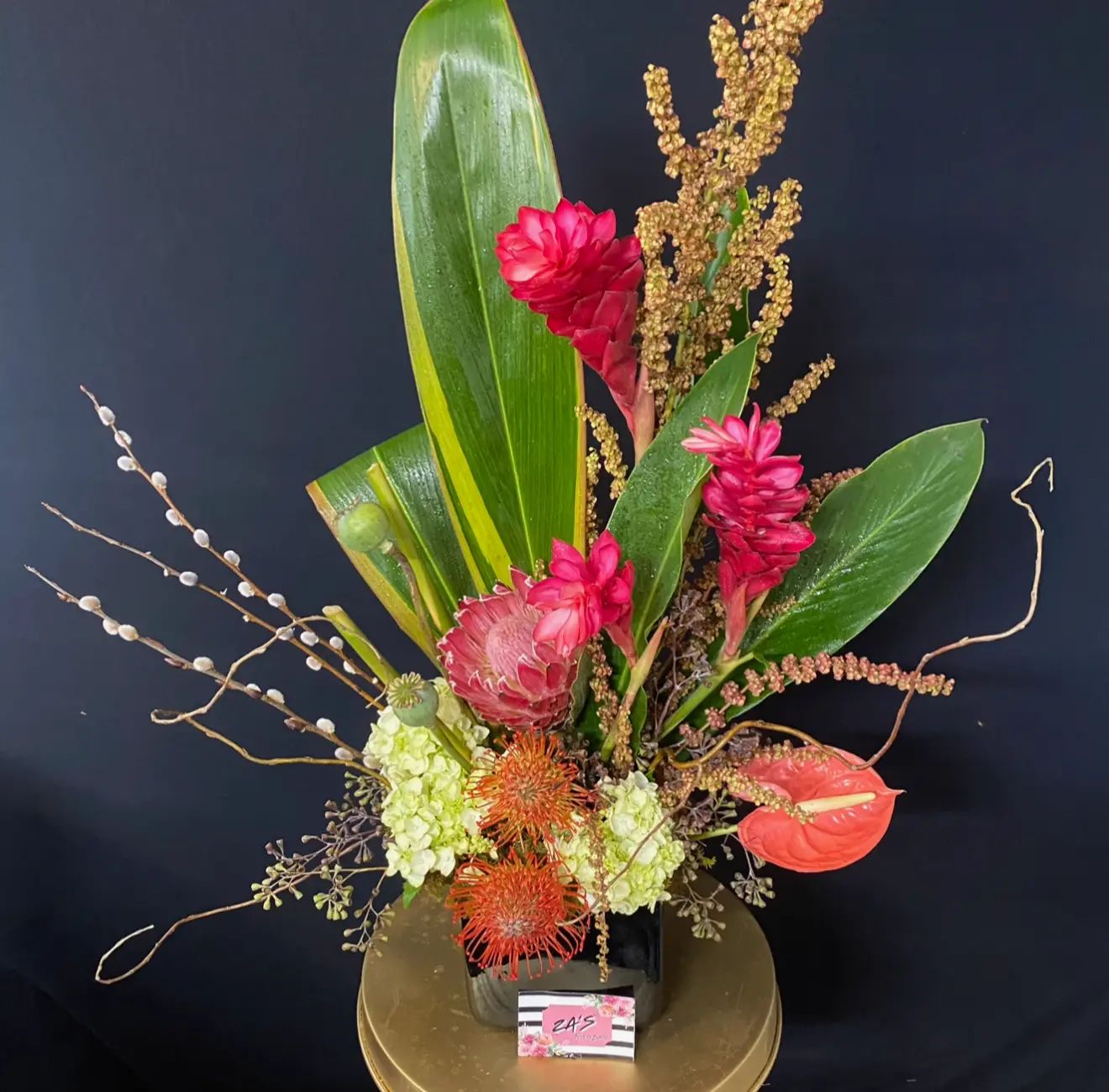 This striking, modern arrangement brings a touch of the tropics to any space. Designed with a focus on architectural lines and bold textures.